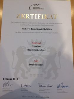 Wir sind sehr stolz darauf das unser "Hausbrot", sowie das Roggenmischbrot ein "sehr gut" erhalten haben,
